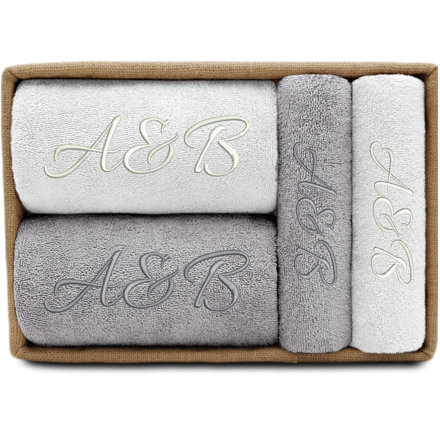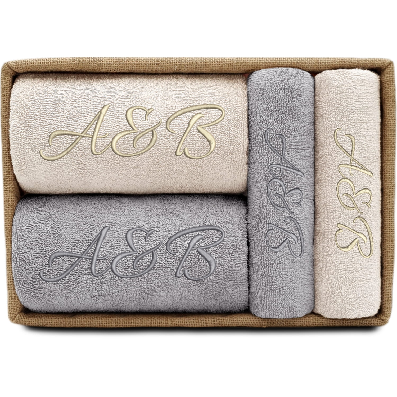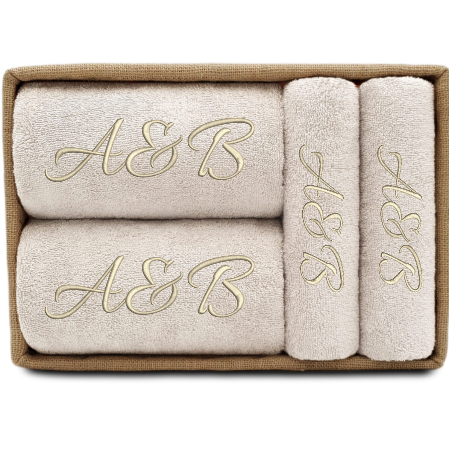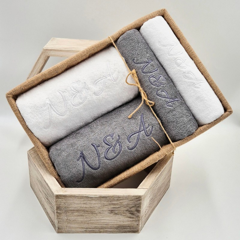 Zestaw 4 ręczników w koszu z inicjałami pary to stylowy i praktyczny prezent dla pary na ślub, rocznicę ślubu lub parapetówkę. Personalizowane inicjały nadają mu elegancki, indywidualny charakter i sprawiają, że staje się wyjątkową pamiątką wspólnych chwil.
