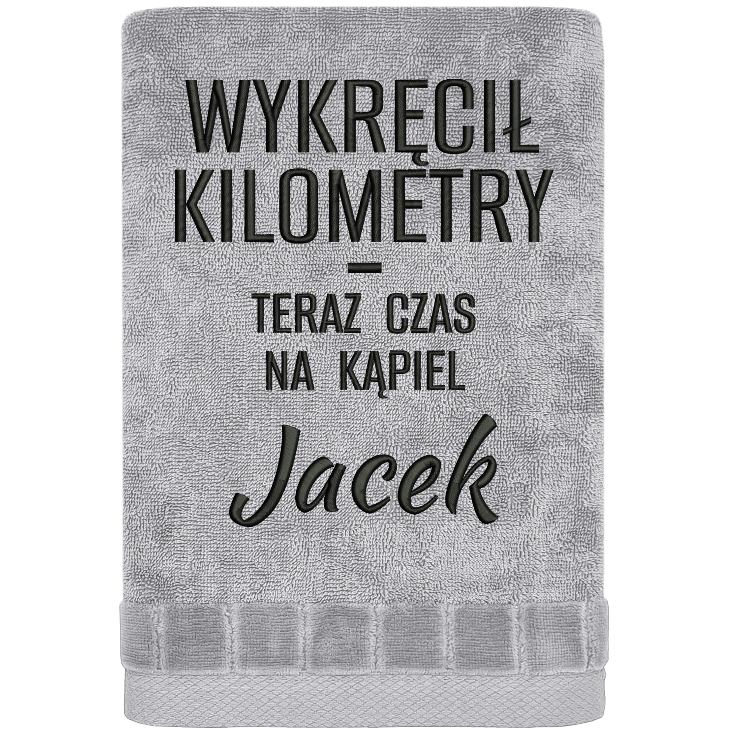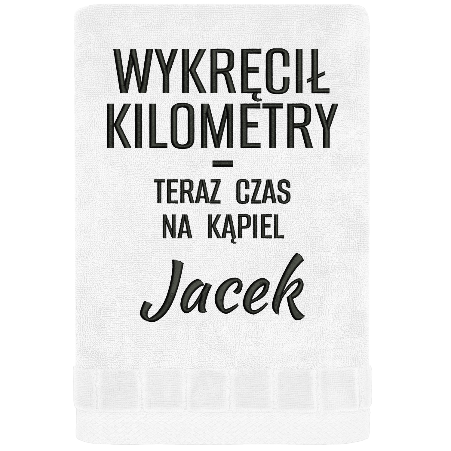 Są ludzie, którzy jadą „na spokojnie”… i są tacy, co „jeszcze tylko jedna pętla” i nagle robi się 60 km więcej. Ten ręcznik dla rowerzysty „Wykręcił kilometry, teraz czas na kąpiel” jest dokładnie dla tej drugiej grupy – tych, co wracają zmęczeni, ale z bananem na twarzy. Najpierw napis – i od razu wiadomo, że ktoś tu nie jeździ po bułki. Potem dochodzi personalizacja z imieniem i robi się jeszcze lepiej – bo to już nie jest zwykły ręcznik, tylko personalizowany prezent dla rowerzysty, który idealnie pasuje do jego zajawki.