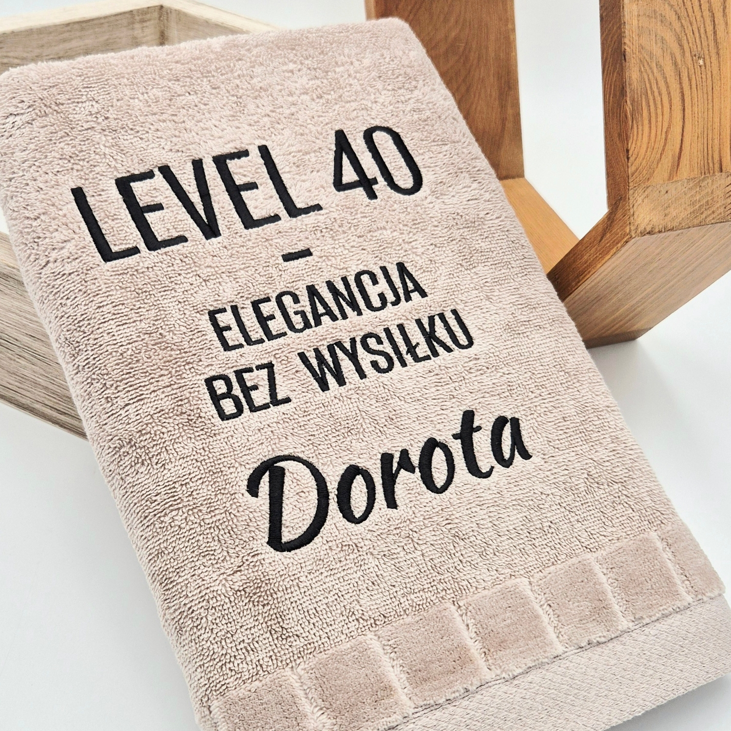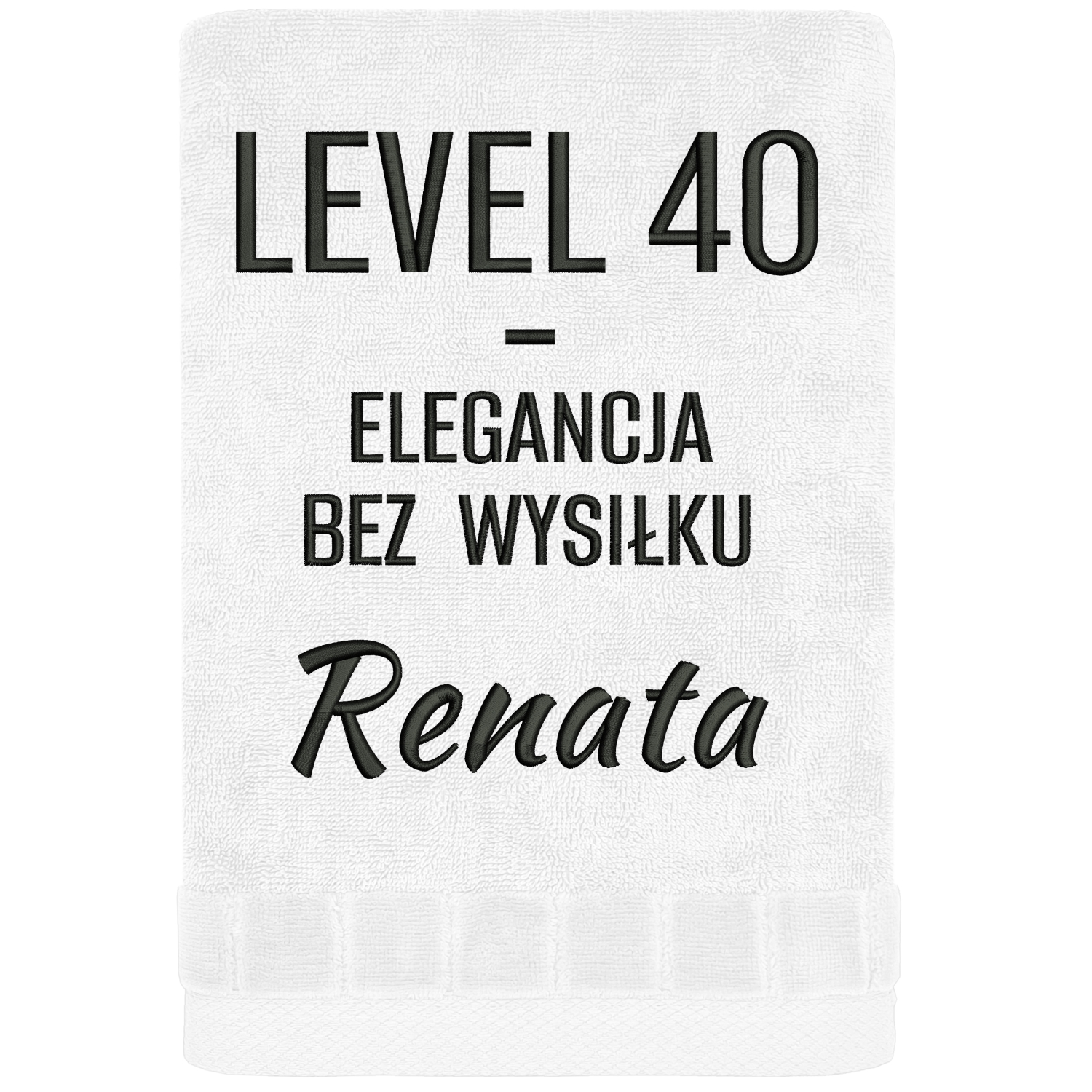 Jeśli szukasz prezentu na 40 urodziny z imieniem, który jest bardziej „klasa” niż „krzyk” – to jest strzał w punkt. To także elegancki ręcznik na prezent, który mówi jedno: bez wysiłku, ale na poziomie.