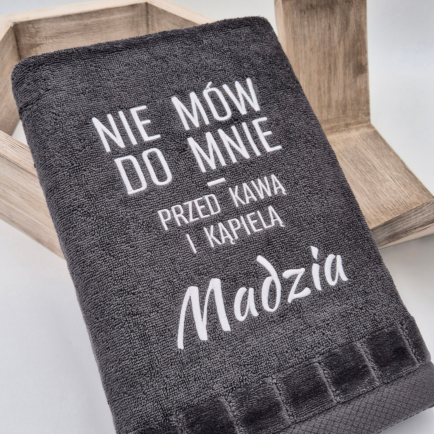 Jeśli znasz kogoś, kto rano bez kawy to jak elf bez skrzydeł — apatyczny, cichy i groźnie wręcz zdolny rzucać spojrzeniem wilka z bajki — to ten ręcznik idealnie odda jego poranną filozofię życia. Ręcznik „Nie mów do mnie przed kawą i kąpielą” to prezent dla tych, którzy potrzebują chwili ciszy, zanim włączą tryb człowieka.