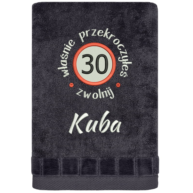 Ręcznik „Zwolnij! Przekroczyłeś... 30” to więcej niż tylko miły gest – to wyraz troski, dystansu do życia i poczucia humoru. Bez względu na to, czy będzie to prezent na 30 urodziny dla niej, czy też prezent na 30 urodziny dla niego, możesz mieć pewność, że stanie się on cenną pamiątką. Wybierz ręcznik na 30 urodziny, który wywoła uśmiech i pozostanie z obdarowaną osobą na dłużej.