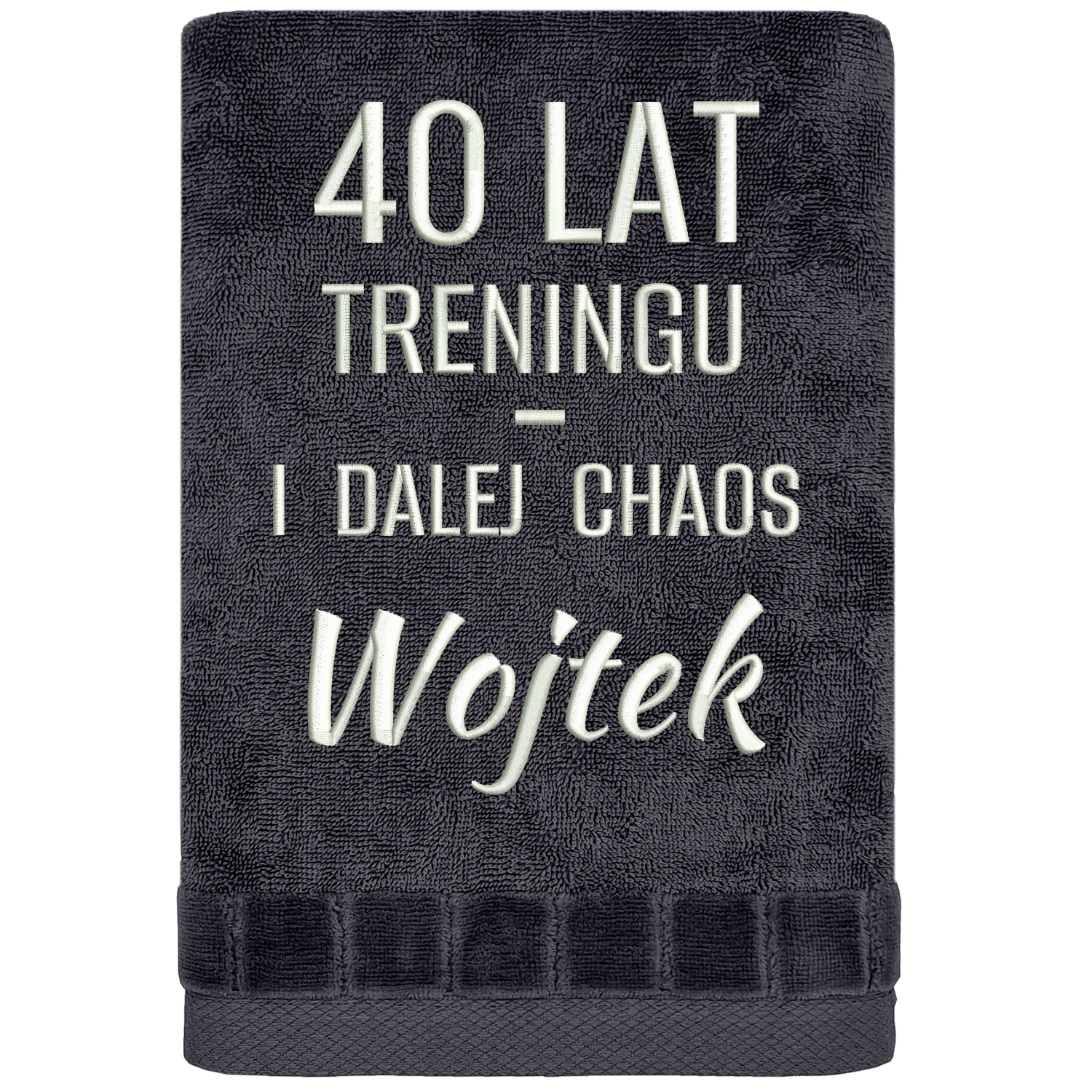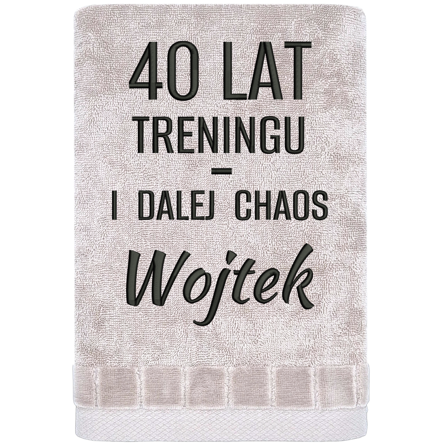 Są lata doświadczenia… i są takie, które uczą Cię, że plan to raczej sugestia. Ten ręcznik „40 lat treningu i dalej chaos” idealnie podsumowuje ten etap – niby ogarniasz, ale życie dalej lubi wrzucić coś „na spontanie”. Najpierw widzisz napis i od razu wiesz, że ktoś tu już swoje przeżył. Potem dochodzi personalizacja i robi się jeszcze lepiej – bo to nie jest zwykły ręcznik, tylko personalizowany prezent na 40 urodziny, który trafia w punkt i mówi dokładnie to, co wszyscy myślą.