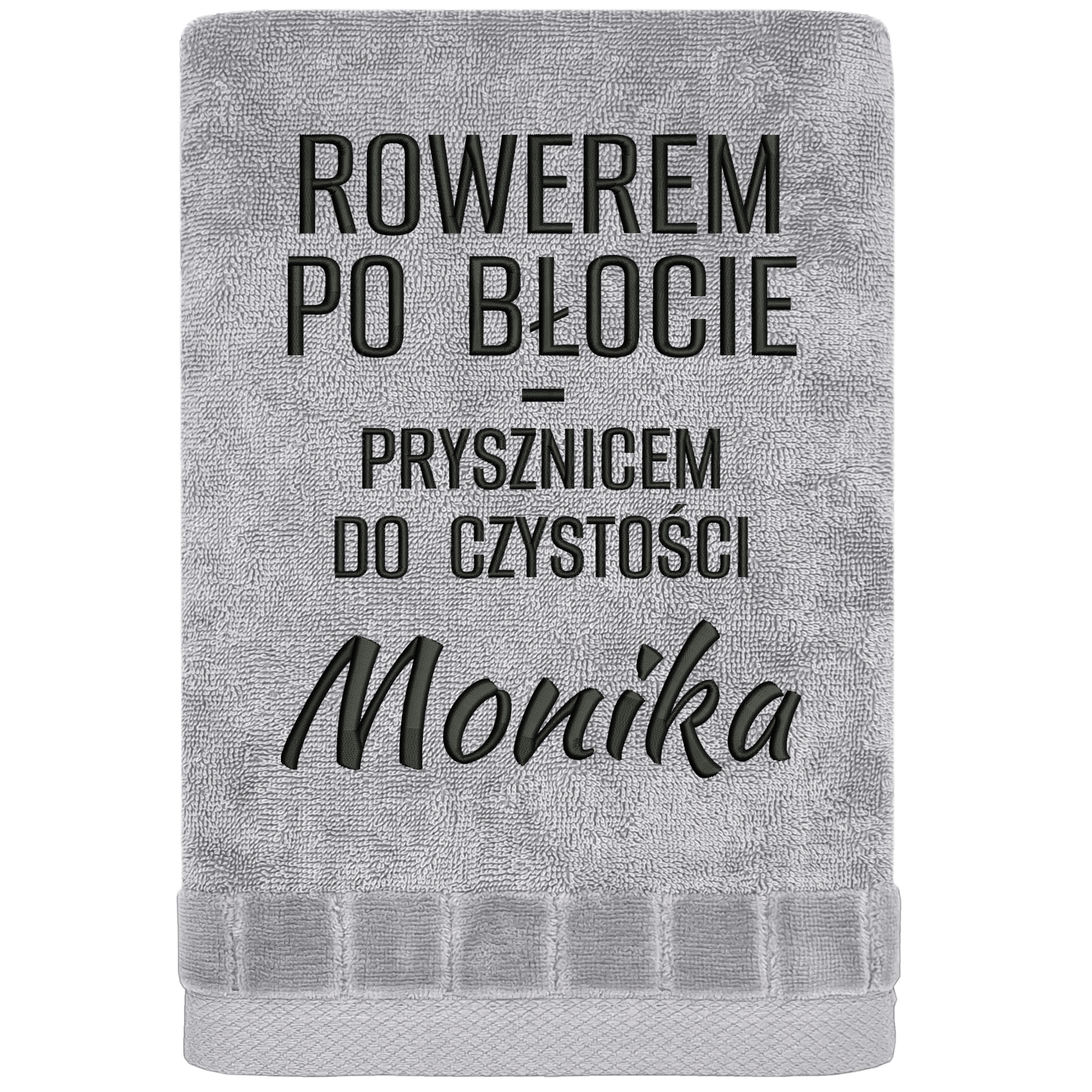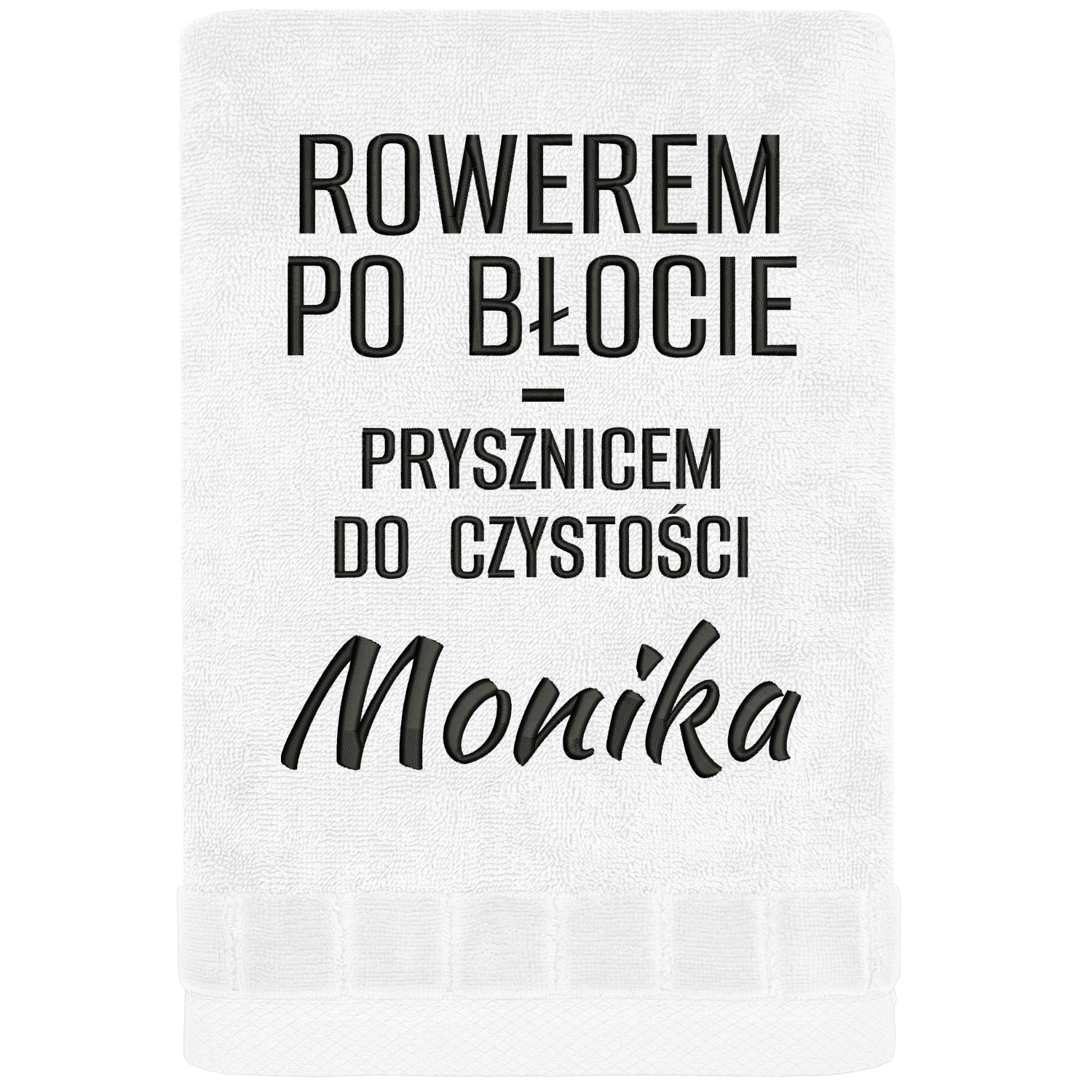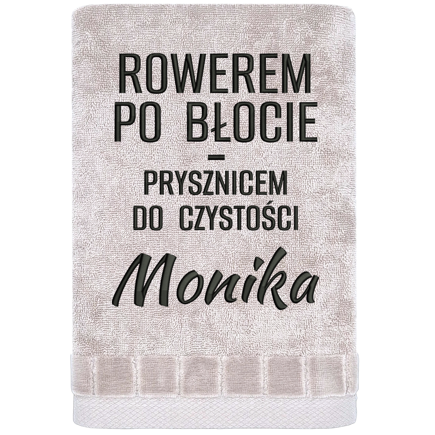 Są przejażdżki… i są takie, po których rower wygląda jak po rajdzie Dakar, a Ty zastanawiasz się, czy to jeszcze błoto, czy już nowa warstwa lakieru. Ten ręcznik dla rowerzysty „Rowerem po błocie, prysznicem do czystości” trafia dokładnie w ten klimat – brudna robota zrobiona, czas się ogarnąć. Najpierw tekst i od razu wiadomo, że właściciel nie omija kałuż. Potem dochodzi personalizacja i robi się jeszcze lepiej – bo to już nie jest zwykły ręcznik, tylko personalizowany prezent dla rowerzysty, który jasno mówi: jazda była konkretna.