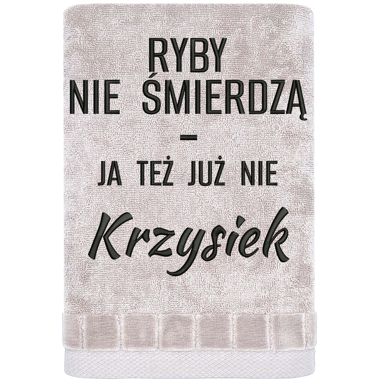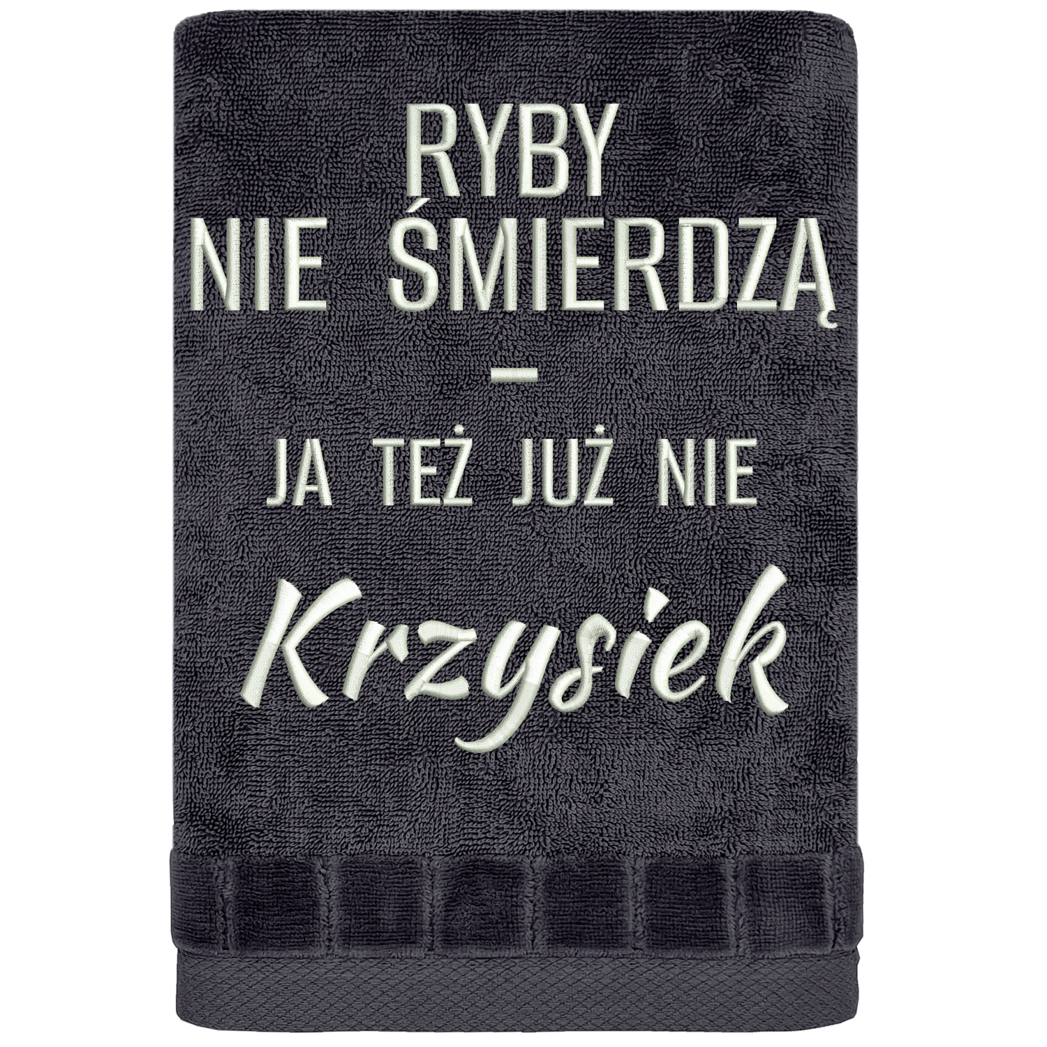Miękka, chłonna bawełna sprawia, że ręcznik jest nie tylko zabawny, ale też w pełni użytkowy. Dzięki zawieszce łatwo go powiesić, a trwały haft pozostaje wyraźny nawet po wielu praniach. To prezent, który nie kończy się na jednym śmiechu – zostaje na dłużej i naprawdę się przydaje. Jeśli szukasz śmiesznego prezentu dla wędkarza z imieniem, który jednocześnie jest praktyczny, to dokładnie ten kierunek. To także personalizowany ręcznik dla wędkarza na prezent, który łączy humor, funkcjonalność i trafiony przekaz w jednym produkcie.